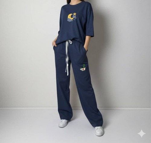 ست تیشرت و شلوار نخ پنیه گلدوزی